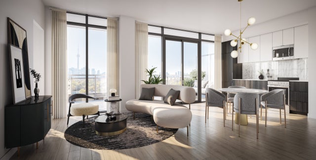 Classic black and white cuts a striking figure on Dupont Street. The contemporary architecture rises 9 storeys, transitioning from expansive glass at street level to crisp white precast and back again. The stepped design creates enviable opportunities for sun-filled terraces that overlook the city.