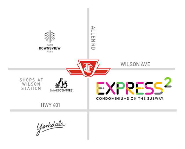 Set at Tippett Road, Express 2 offers residents seamless access to TTC subway lines, Highway 401, Yorkdale Mall, and a variety of everyday amenities. Whether you’re commuting downtown, shopping at designer outlets, or exploring nearby green spaces, everything is just minutes away.