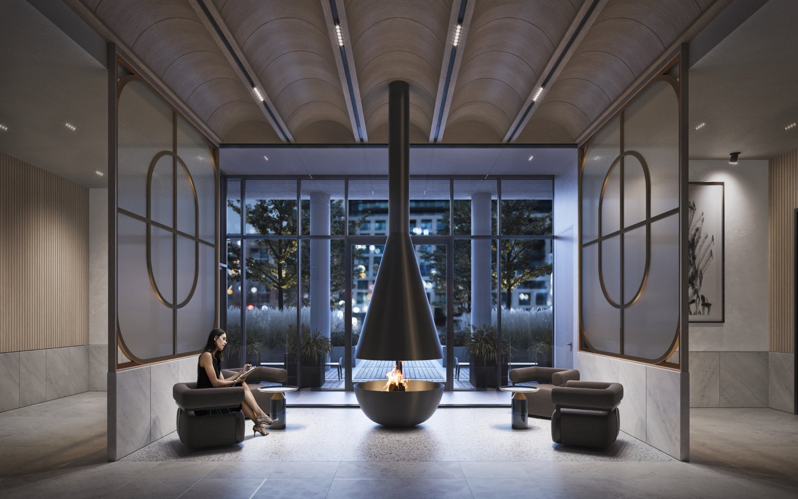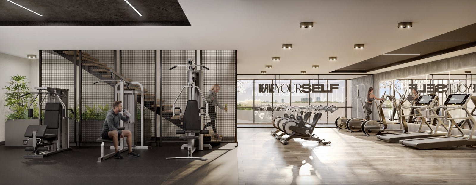 Fitness studio, indoor dining room, co-working space, screening room, games room, outdoor lounge, social lounge, kids area, residents lobby, outdoor dining, outdoor BBQ, meeting room, parcel rooms, art/maker studio, library lounge, pet wash